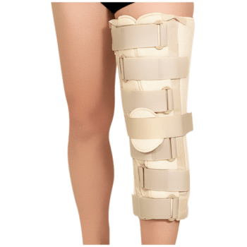 Made of stable and rigid plastic material. It has a removable and self-adhesive foam lining, which covers the entire surface of the ankle. It is hypoallergenic and antiperspirant. It has two double-sided aluminum panels, very strong, stabilizing the foot limb. Four self-adhesive lashing straps. Sole with anatomical design “ROCKER BOTTOM” for shock absorption. It has an in-out air inlet-out valve for reduction and recovery of edema. It also has a multicenter mechanism “ROM” from 45 ° of plantar flexion, to 45 ° of dorsal flexion, in positions of choice every 7.5 °. Ambidextrous.